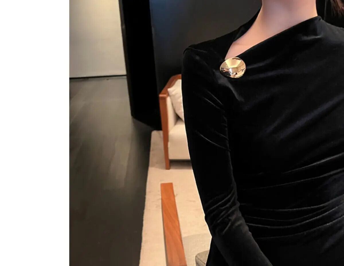 ドレス斜め襟デイリー秋スリム Comtable オールマッチシンプルスタイルブラック オータム 秋物
