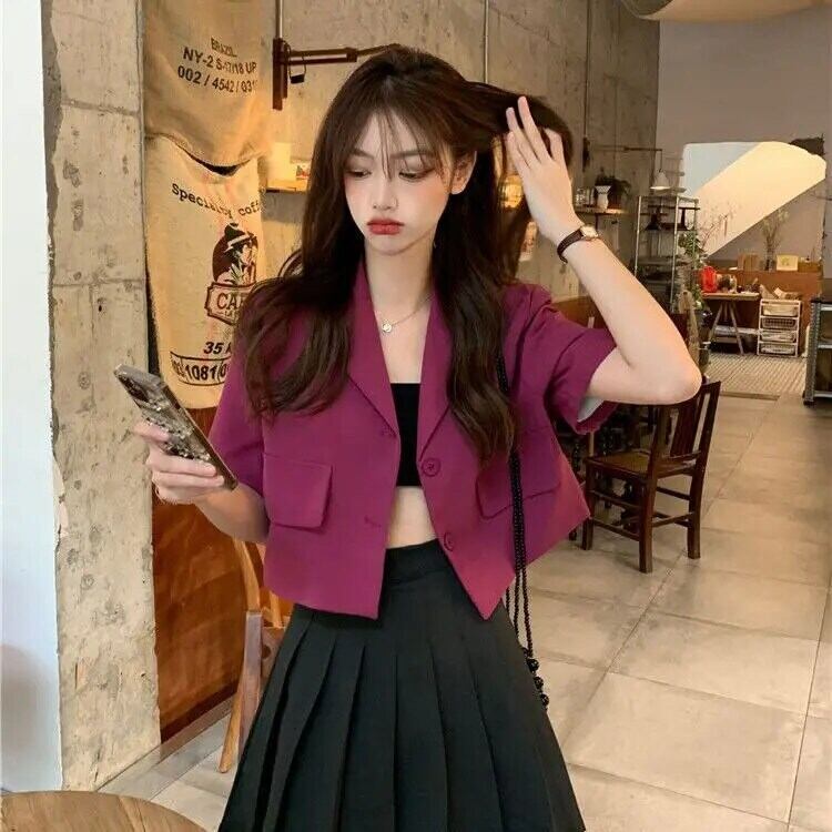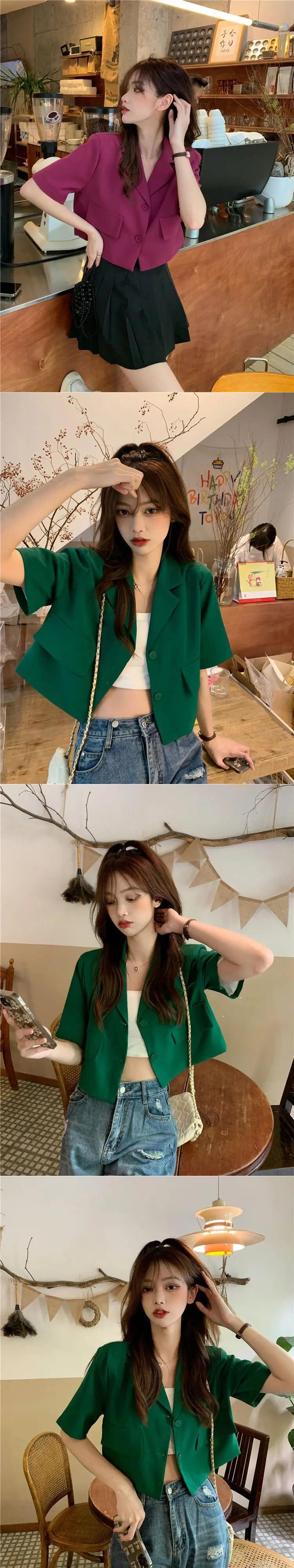 夏半袖クロップドジャケットボタン薄型ブレザー 2024 ソリッドカラーショートスーツコート ハーフスリーブ サマー 夏物