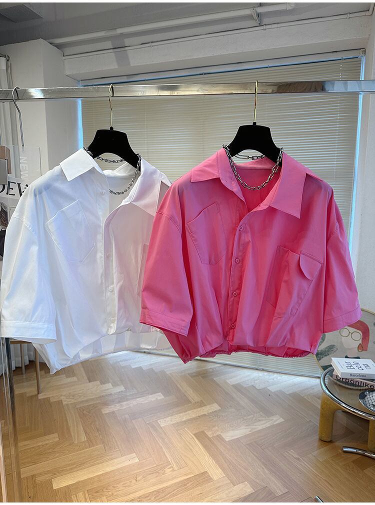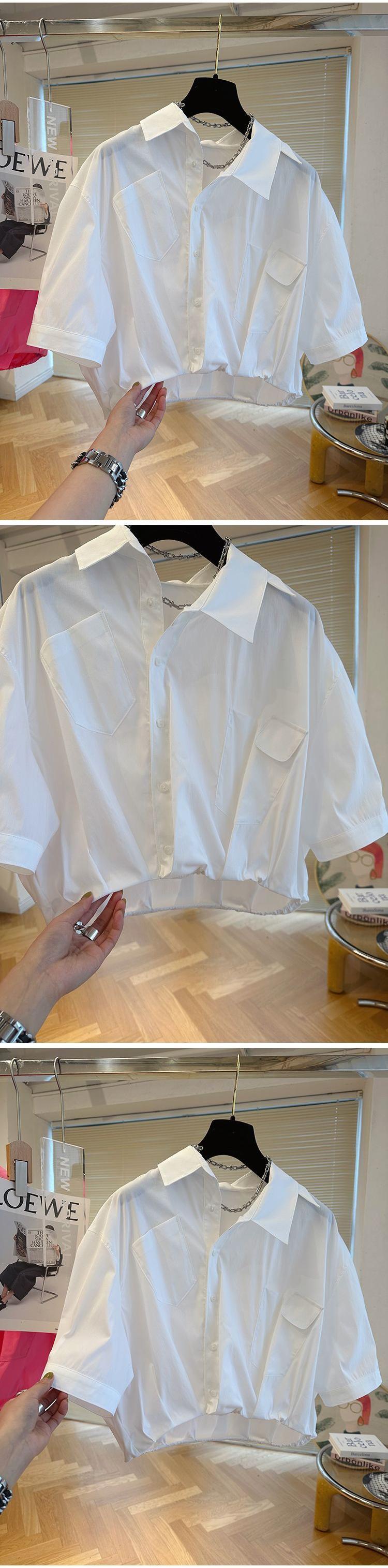 ルーズイレギュラーシャツレディース半袖ブラウスサマークロップトップデモーダ2024白シャツ ショート ホワイト ハーフスリーブ 夏物
