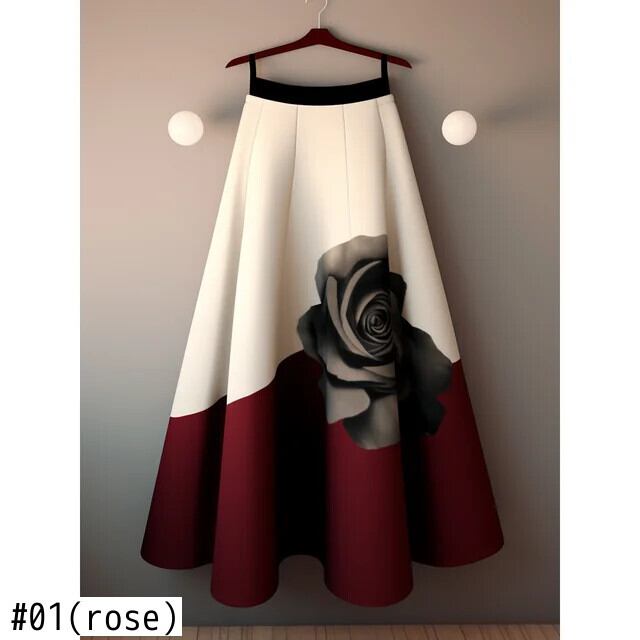ローズプリントプリーツスカートウエストチュニック気質花ペチコート段段段ビッグスイングロングスカート 花柄