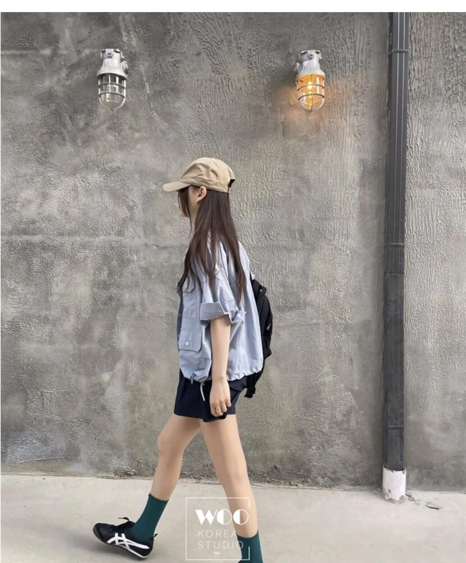 S es 2024 シャツポケットレトロバックル裾巾着半袖トップサマーブラウスジャケット ショート ハーフスリーブ 夏物