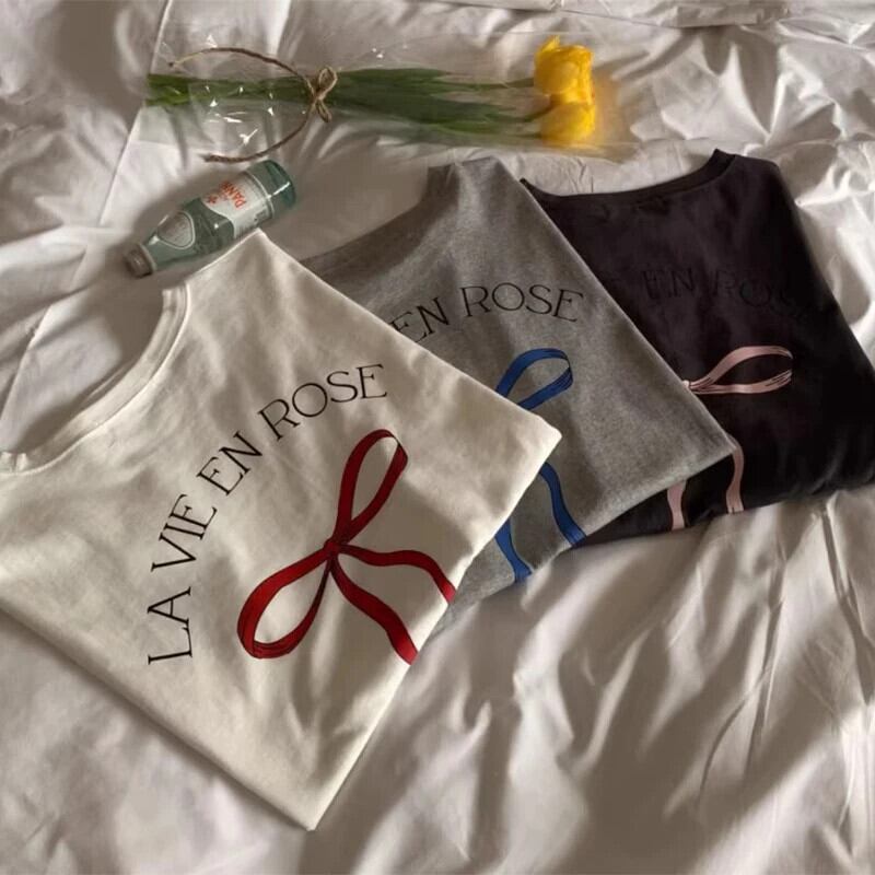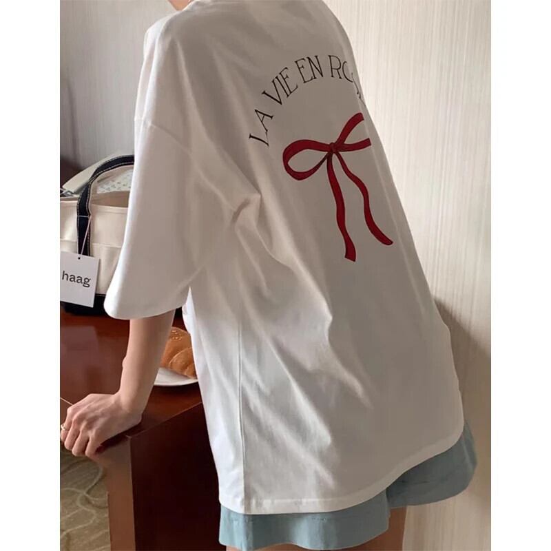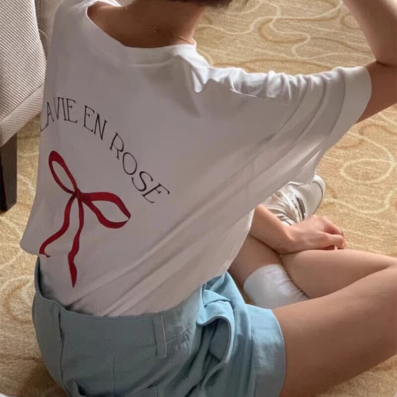 グランジ Y2k トップグラフィック Tシャツ 2024 夏白リボンプリント半袖 Tシャツ原宿 Tシャツ ショート ホワイト ハーフスリーブ かわいい サマー 夏物
