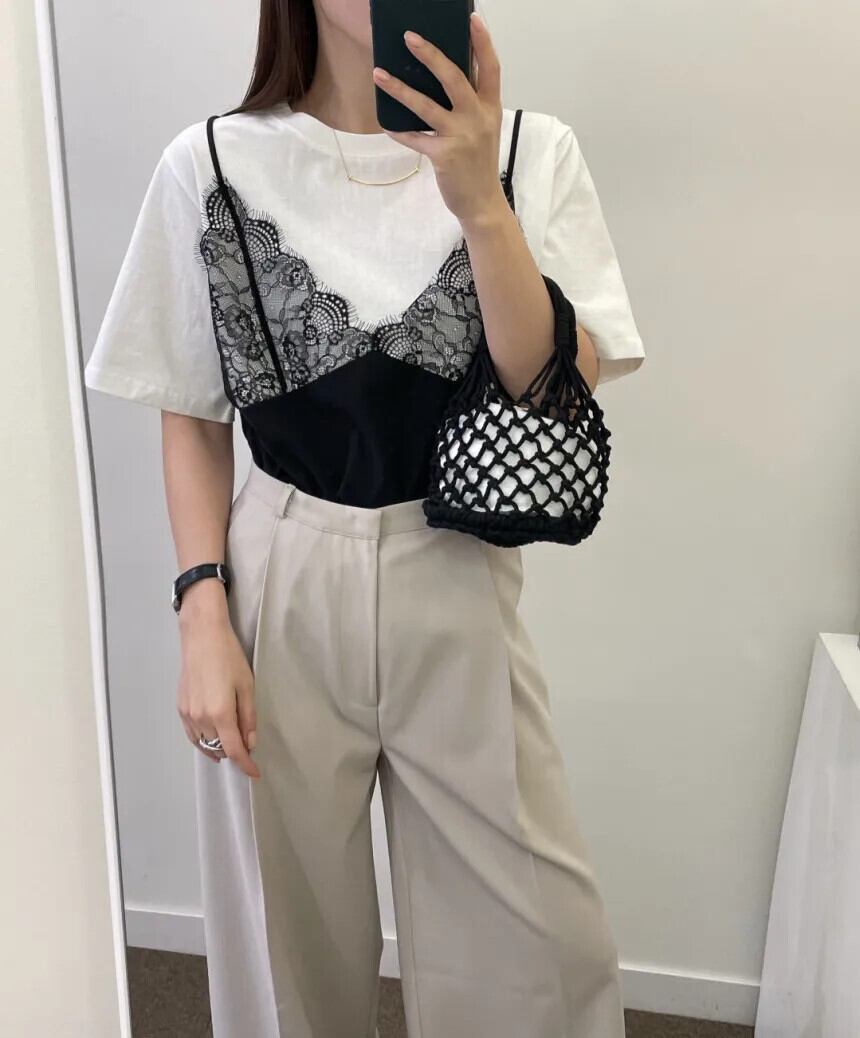 グラフィック Tシャツ偽ツーピースパッチワークレースルーズ半袖 Tシャツ Y2k トップ原宿グランジ Tシャツタンクキャミソール ショート ハーフスリーブ かわいい