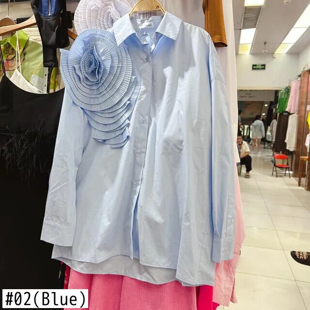 ブラウス 2024 気質 3D 花柄シャツ特大トップス長袖デ白ブラウス ロング ホワイト