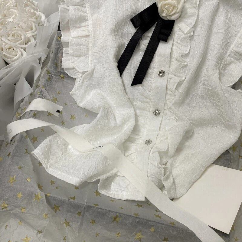 ソリッドカラーノースリーブコートスタイルシャツブラウスタンク&キャミソールセクシークロップドモーダ2024白シャツ ホワイト