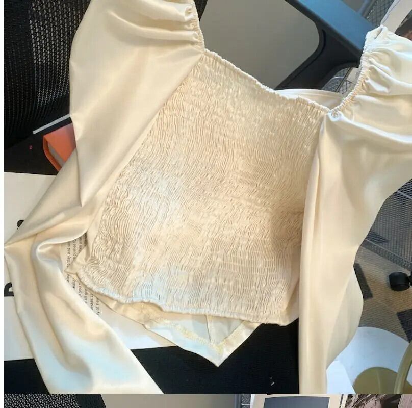 De Moda フレンチスリーブショートウエストシャツクロップオフショルダースクエアネックトップブラウスシフォンシャツ スクウェア