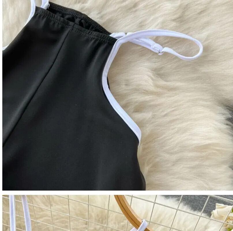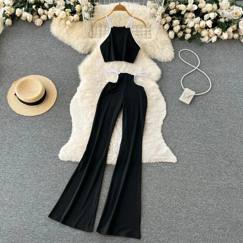 タンクセクシー黒キャミソールトップス Tシャツ 2 点セットレディース衣装スーツ Y2k 夏ウエストフレアパンツワイドクロップレッグ レッド ブラック サマー 夏物