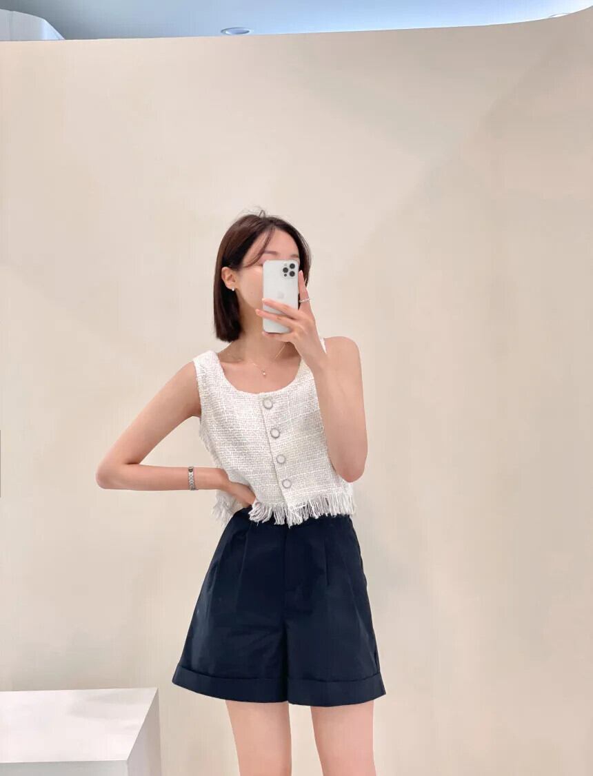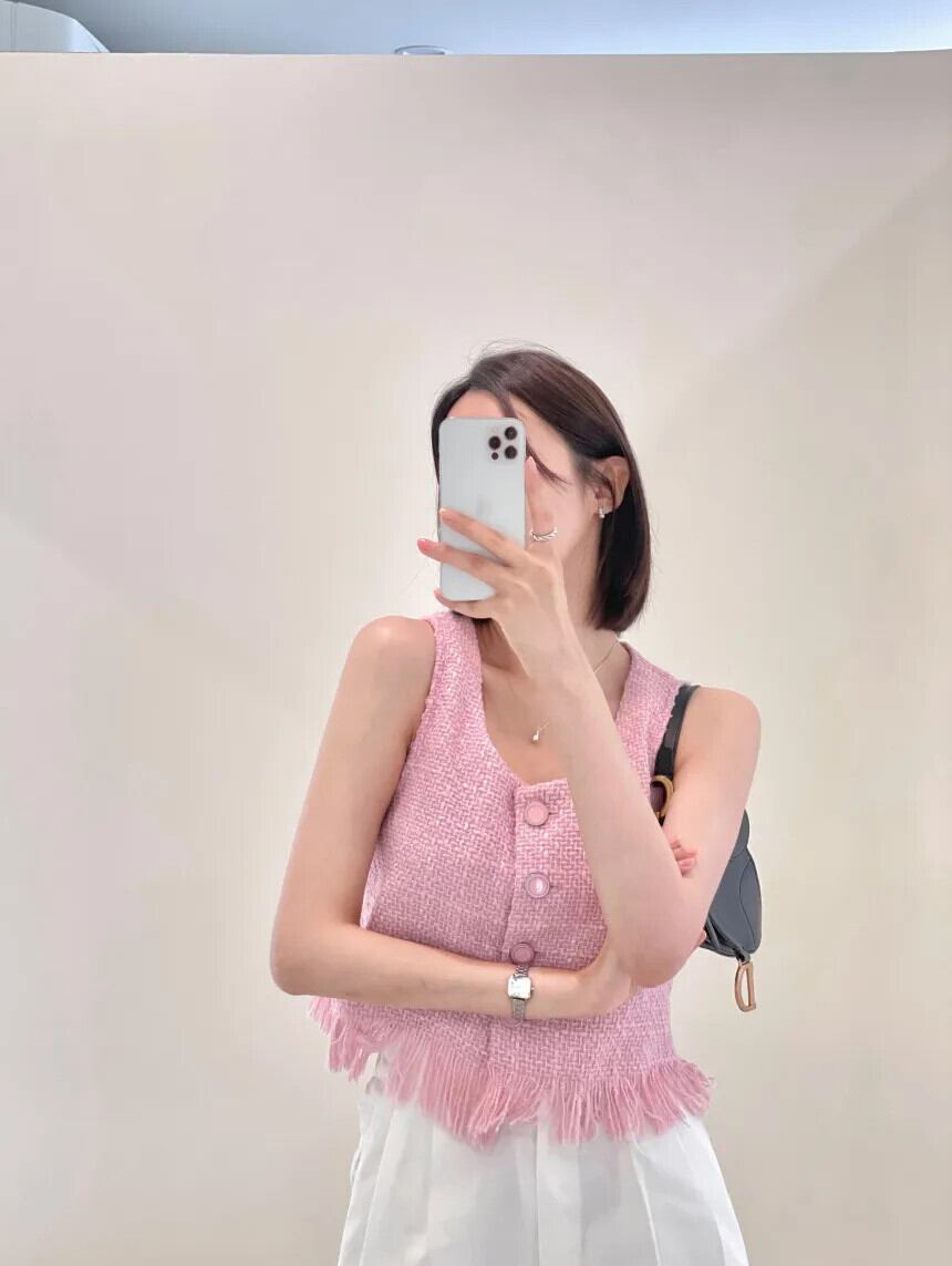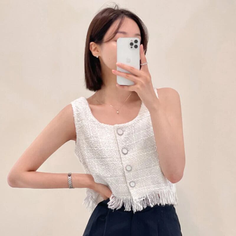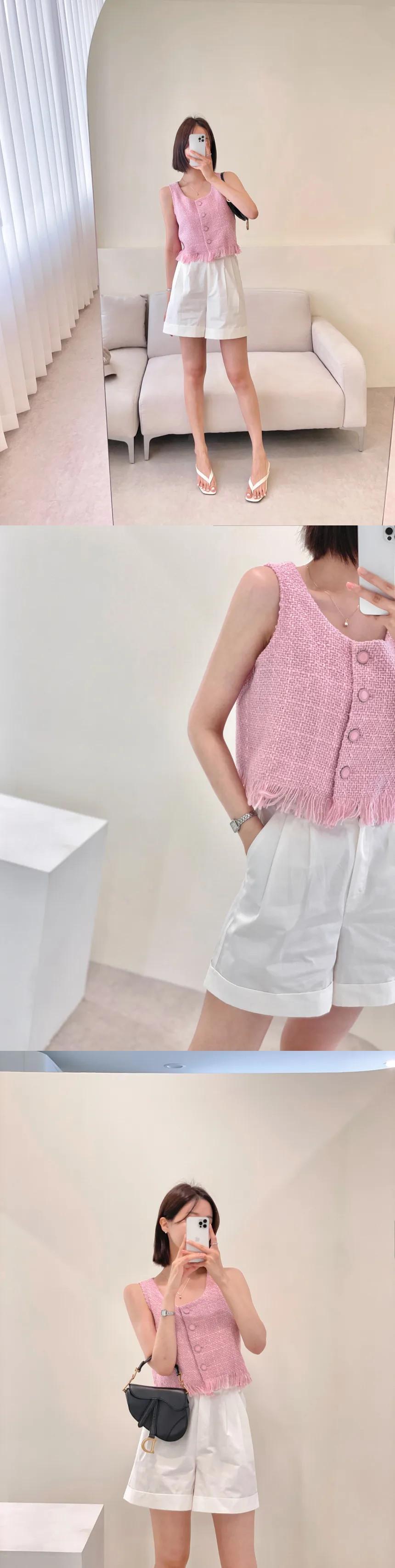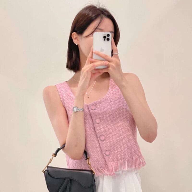 シングルブレストショートツイードベストチョッキ Chalecos パラタンク & キャミソールピンク夏テルジャケットトップス サマー 夏物