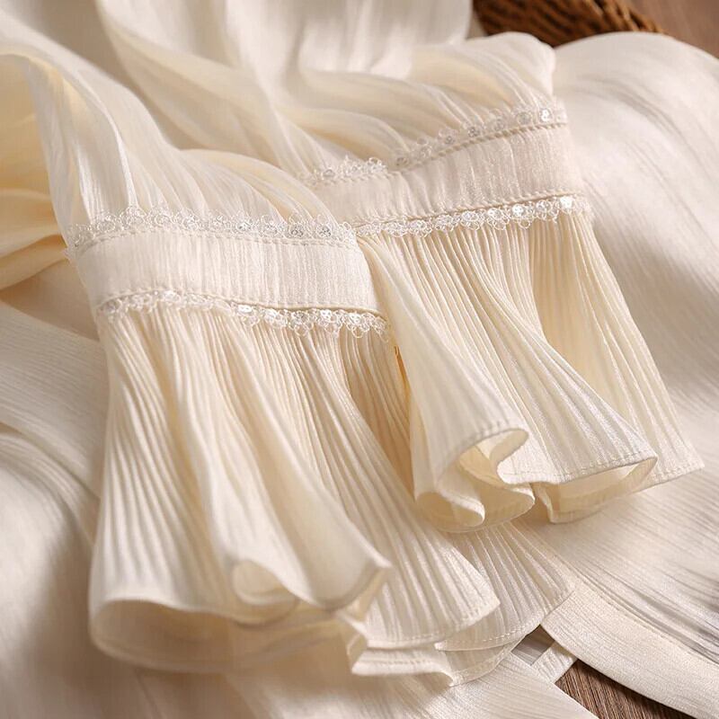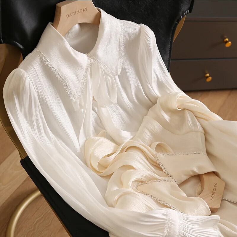 甘いトランペット袖トップブラウスタイアップリボンシフォンシャツ De 2024 シャツ es 大人ガーリー スウィート キュート カジュアル