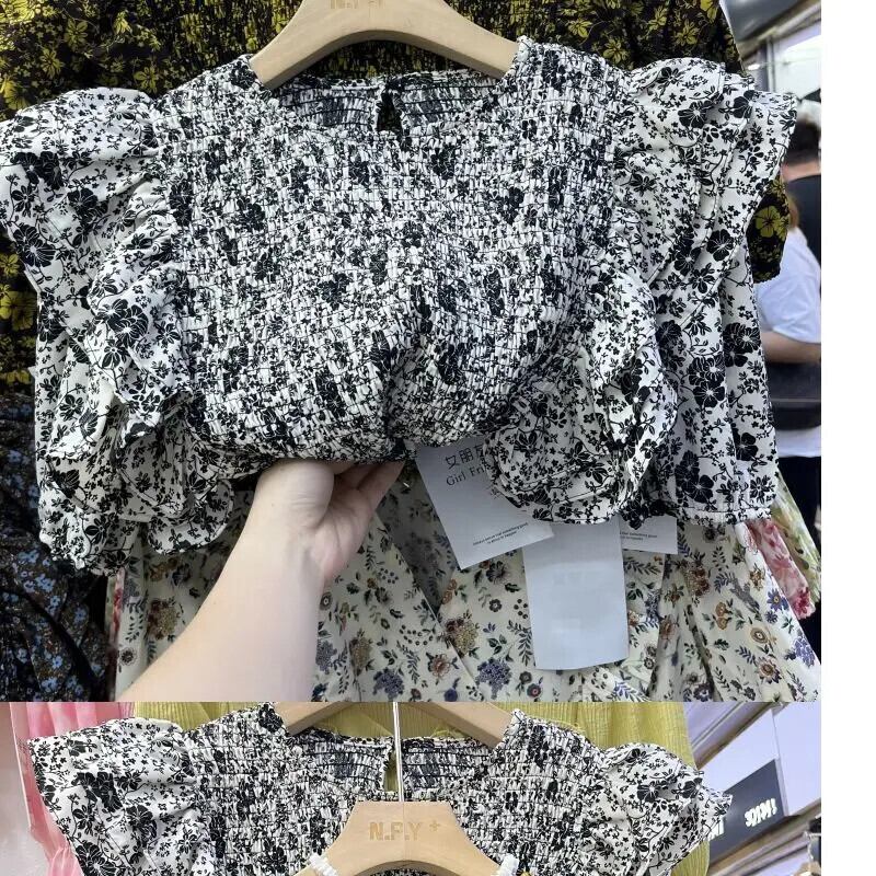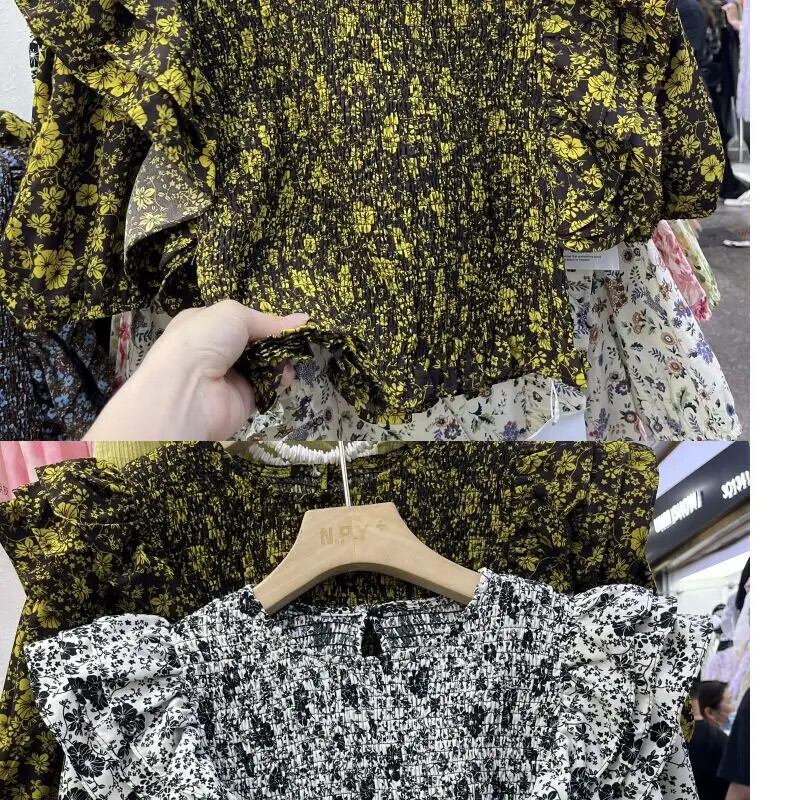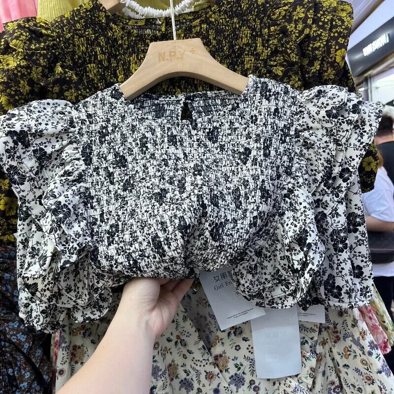 フリル花柄 s es 半袖シャツブラウスサマークロップトッププリント ショート ハーフスリーブ 夏物