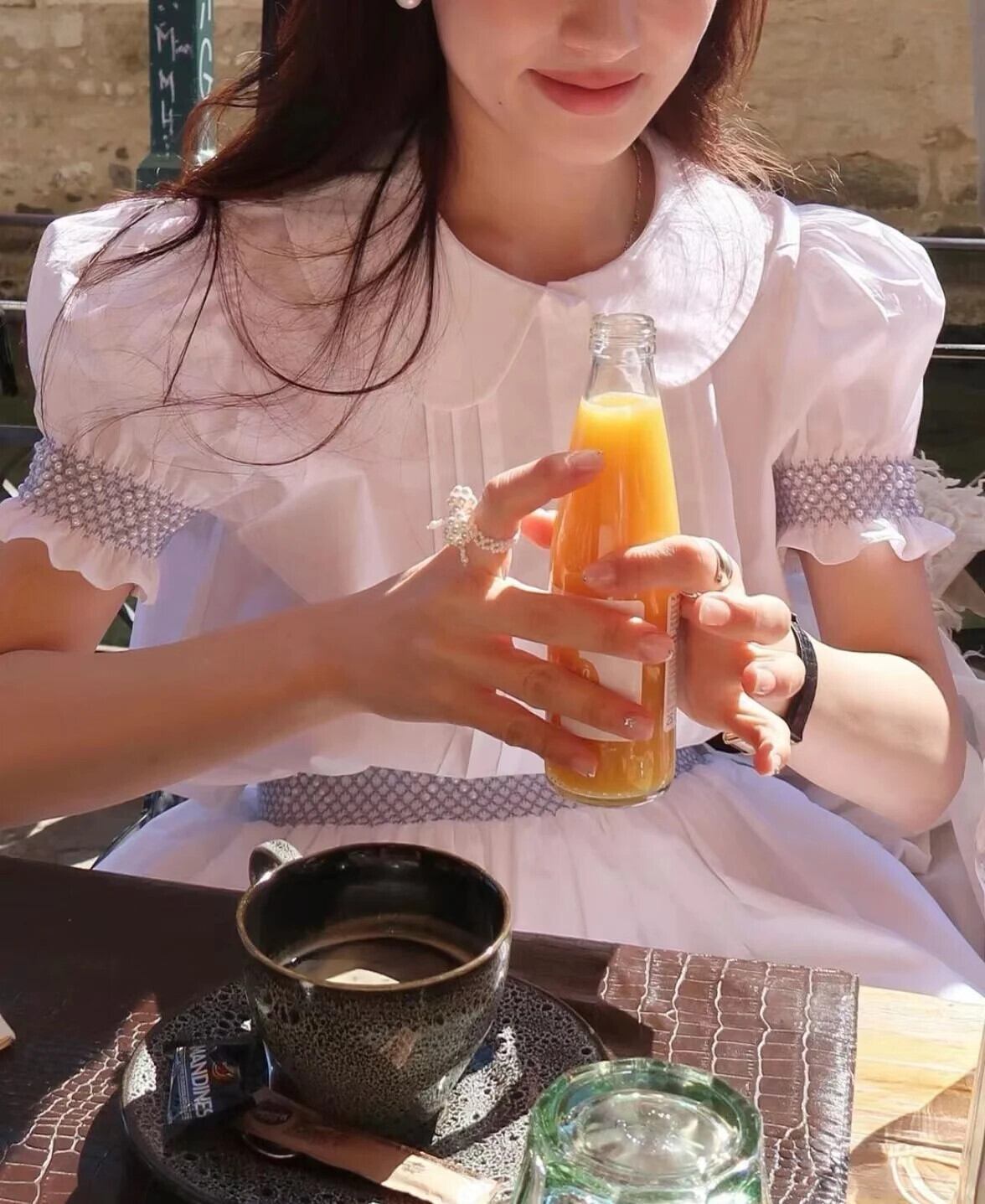 ドールネックバブル半袖シャツ夏トップシャツ白ウエスト大き裾スカートセットプリーツ ショート ホワイト ハーフスリーブ サマー 夏物