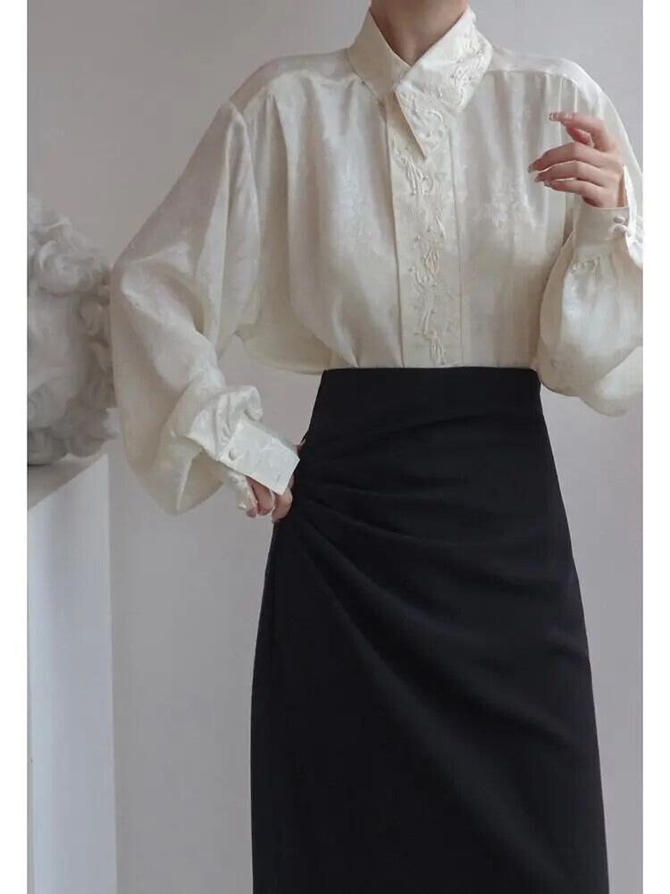 フレンチトップ重工業刺繍シャツ白小さ春ブラウス2024シャツ ホワイト レッド スプリング 春物