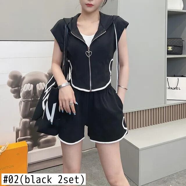 フード付きジャケット半袖パーカージップスウェットラブトップ 2 ピースセットレディース衣装ワイドレッグショーツサマースーツ ショート ハーフスリーブ シャツ 夏物 ブルマー ワイドパンツ