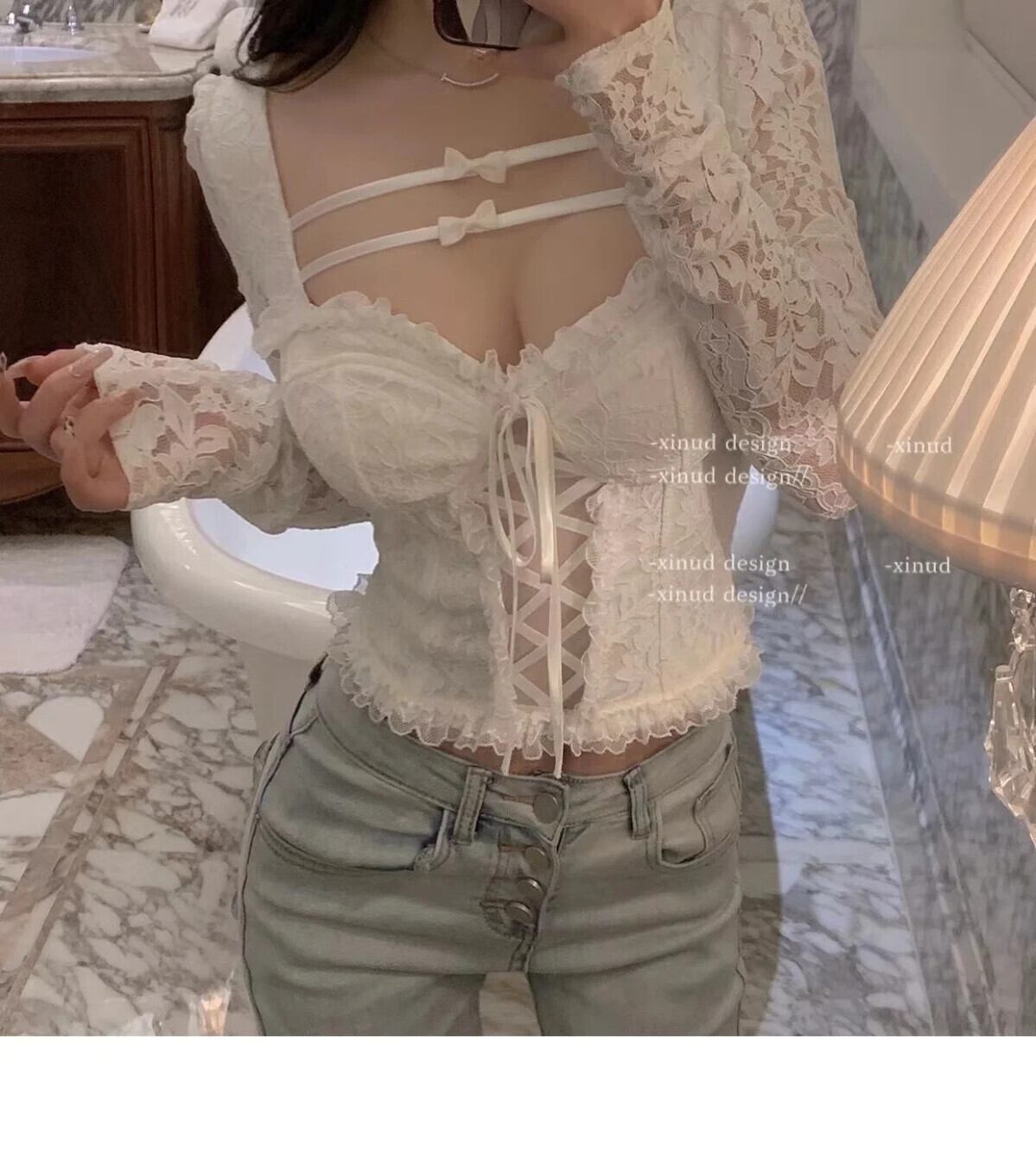 シャツ 2024 Ropa セクシータイトニットボトムトップレース白 Tシャツ es クロップブラウス ホワイト