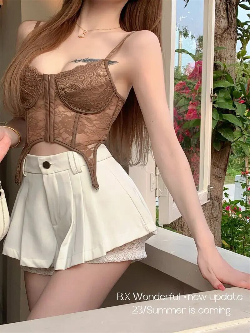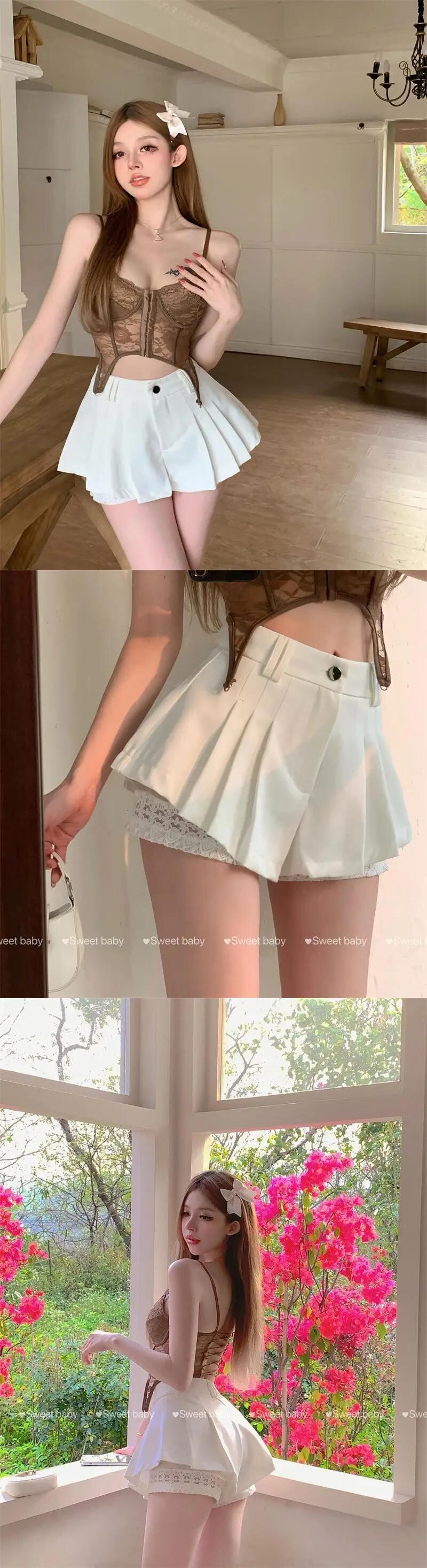 ミニ白レースプリーツスカート Y2k A ライン段段ファルダモーダ 2024 ウエストプレッピースタイル夏スカート ホワイト サマー 夏物 Aライン