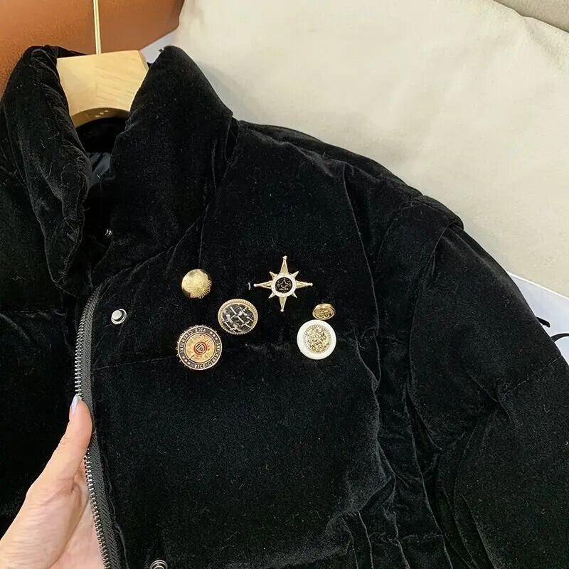 肥厚スタンドコートレトロショートブラックベルベットダウンコットンジャケット秋冬 Y2k トップ Jaquetas Chaquetas コート オータム 秋物 ウィンター 冬物