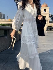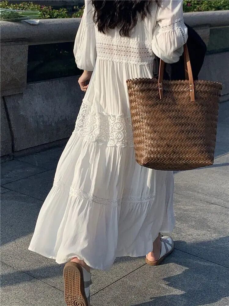ホワイトロングドレス夏自由奔放生きるレースドレスビーチホリデーアウトルーズ Vestidos サマー 夏物
