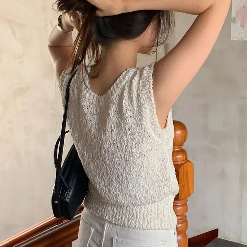 チョッキ気質 V ネックシングルブレストベストプリーツノースリーブニットトップス Y2k セーター Chaleco 黒ジャケット ブラック Vネック