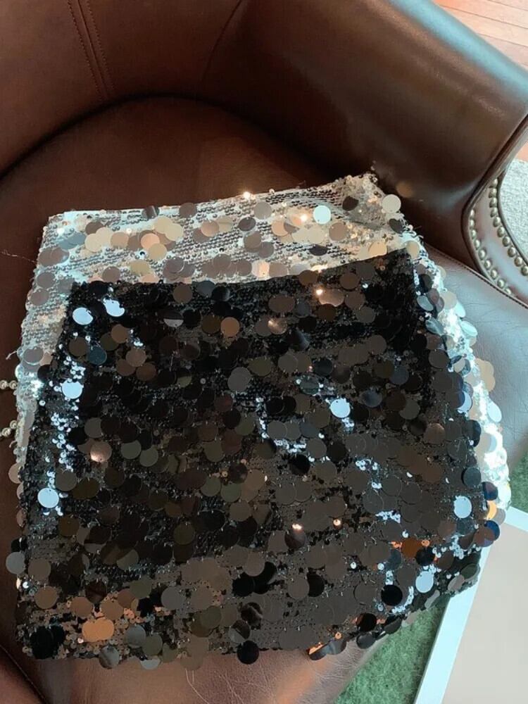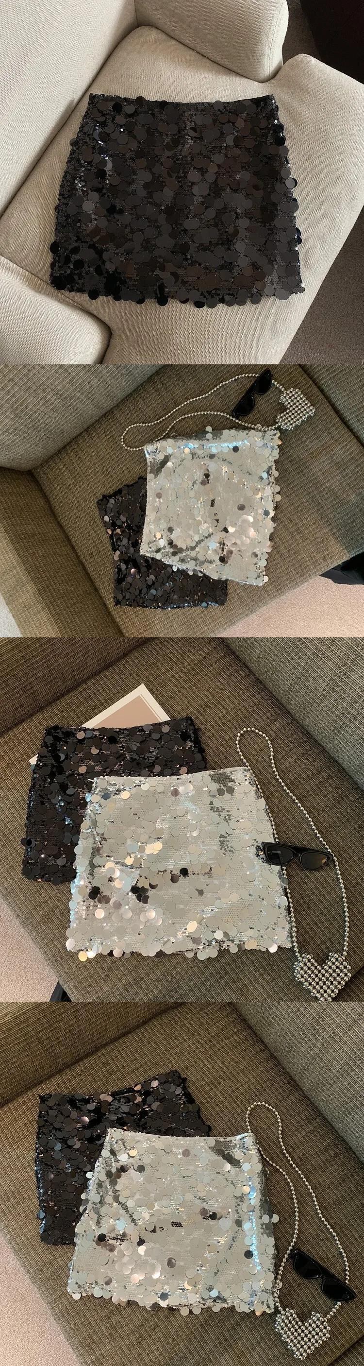 Y2k スカート段ファルダモーダセクシースリムウエストミニスパンコールシルバーペチコートフェアリーコア美学グランジレトロ黒スカート ブラック 銀