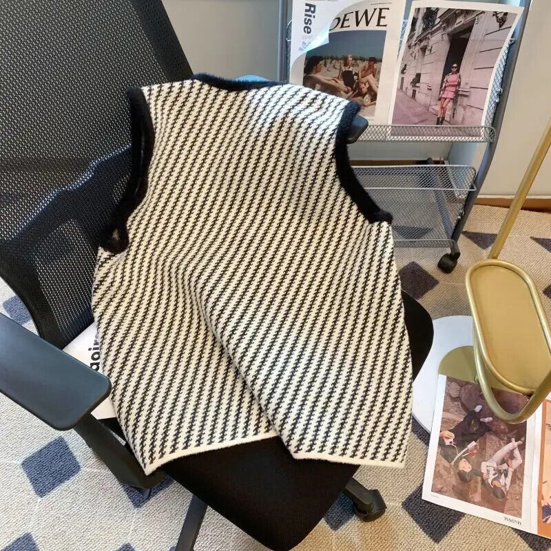ストライプノースリーブカーディガン秋 2024 暖かいチョッキ女子美しい上着ベスト オータム 秋物