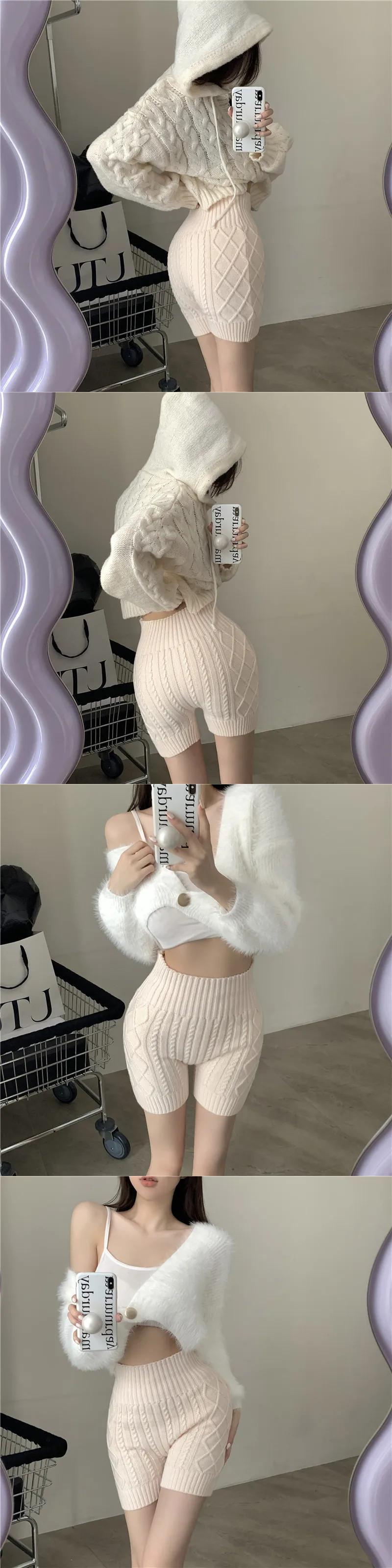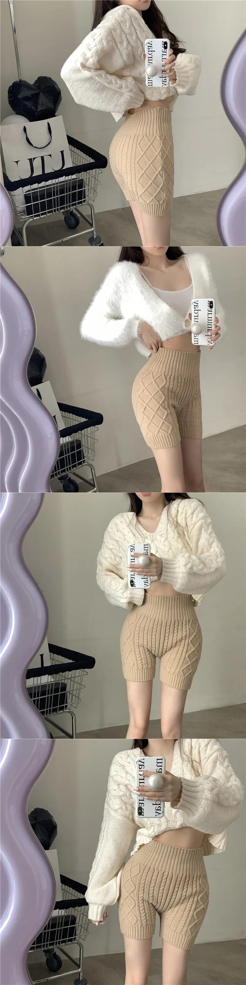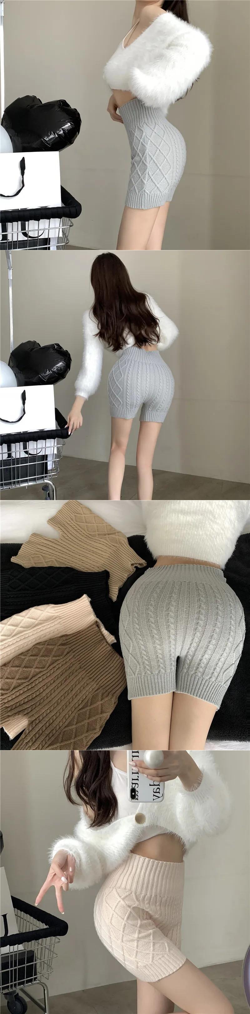 2024 ニット暖かい安全ショート秋スキニー底ショーツ冬ウエストヒップ Y2K Pantalones Cortos デ オータム 秋物 ウィンター 冬物 ブルマー