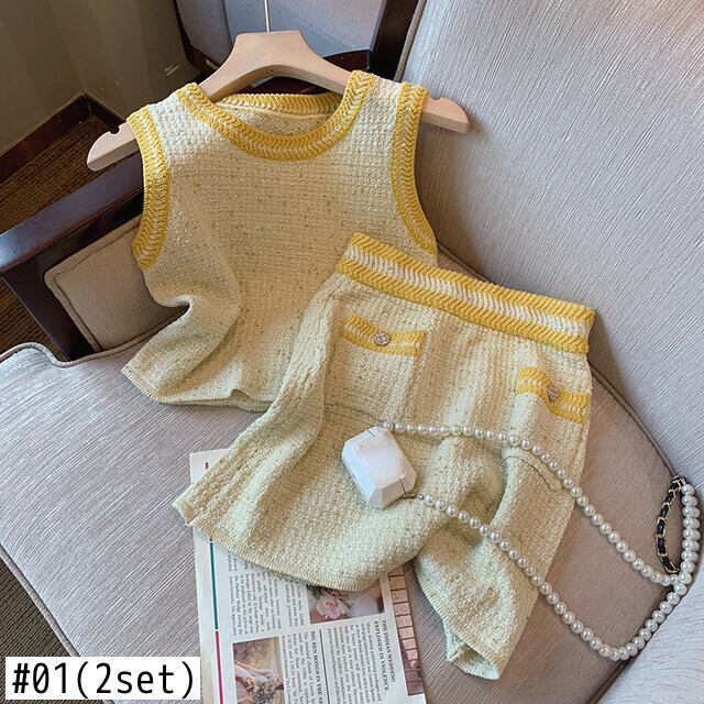 タンクチュニックセクシーキャミソール気質コントラストセーターベスト夏クロップトップニット 2 ピースセット A ラインショートスカートスーツ サマー 夏物 Aライン