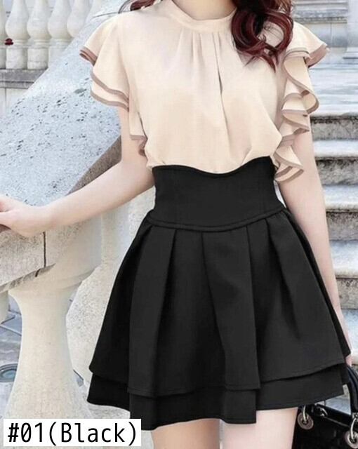 ese ロリータ黒スカート 2024 春秋ラジアンウエストラインスリムショートプリーツミニキュロット ブラック スプリング 春物 オータム 秋物