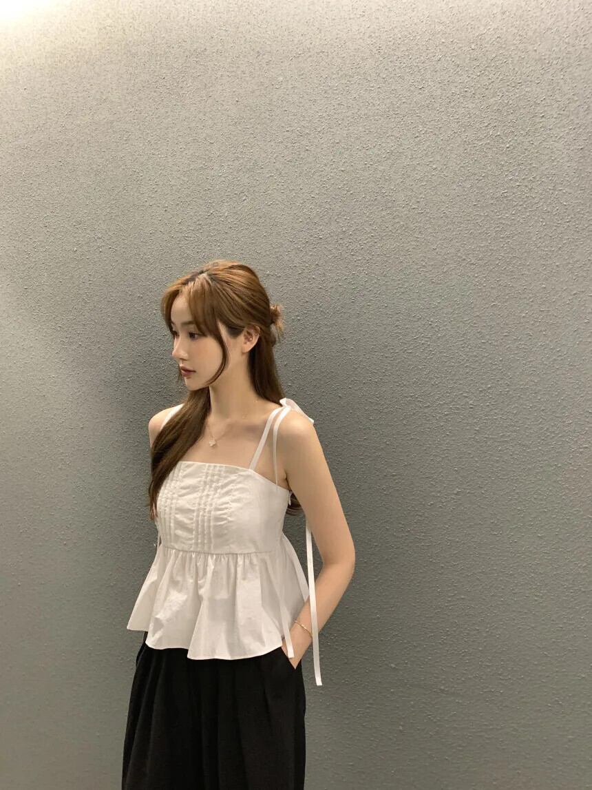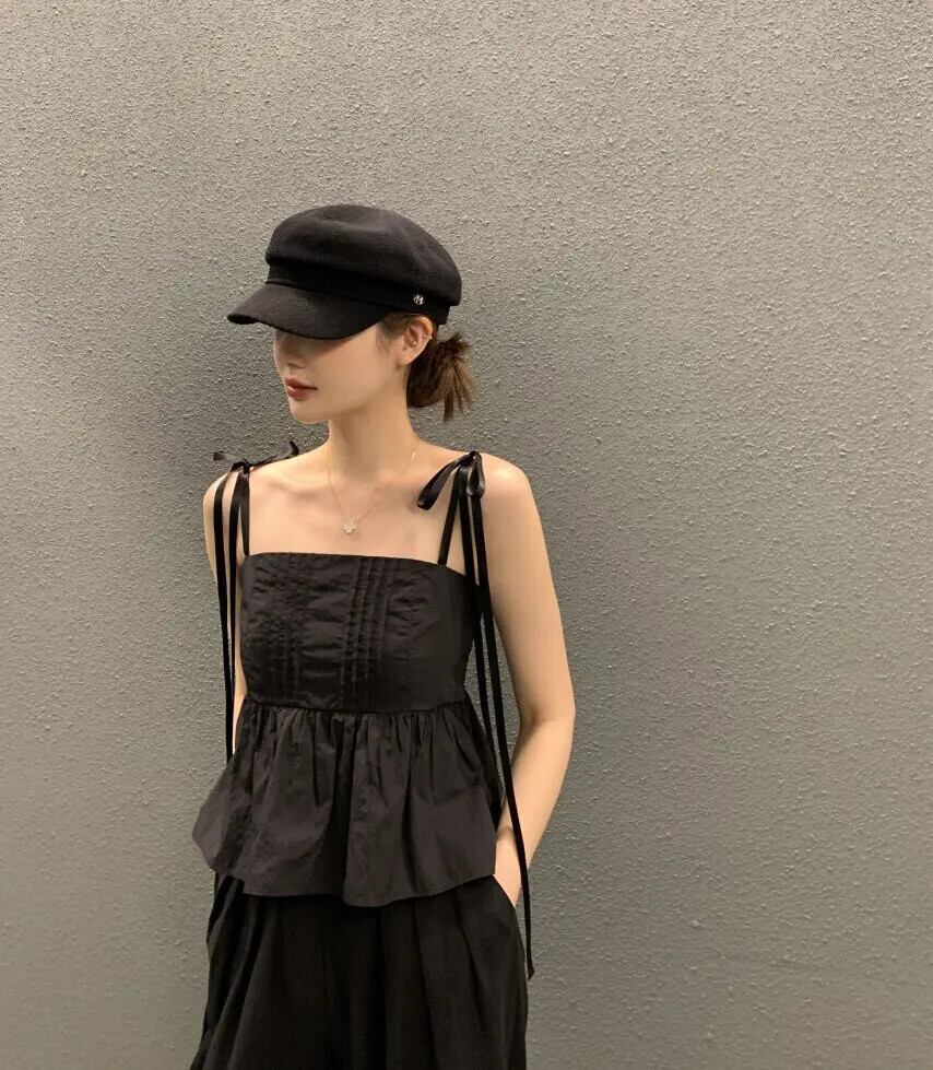 タンクセクシーキャミソールブラックホワイトストラップレスワンショルダーボウブラウスレースアップシャツ es クロップトップシャツ リボン