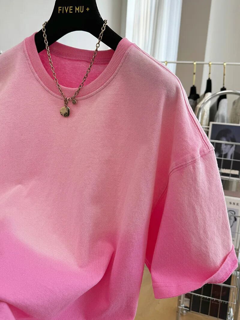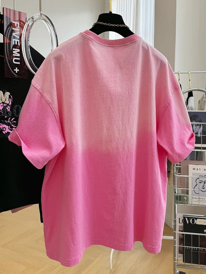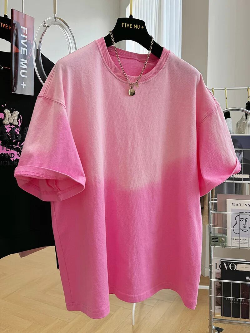 半袖 Ropa デ特大 Tシャツコットン Tシャツグラデーションピンクトップスグランジ Camisetas グラフィック Tシャツ 2024 ハーフスリーブ