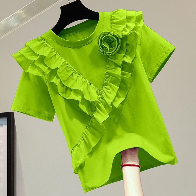 赤い花 Tシャツ原宿 Tシャツグラフィック Tシャツ特大ロパデパッチワーク夏トップス白 ホワイト レッド かわいい サマー 夏物 ソリッドカラー フラワーデザイン