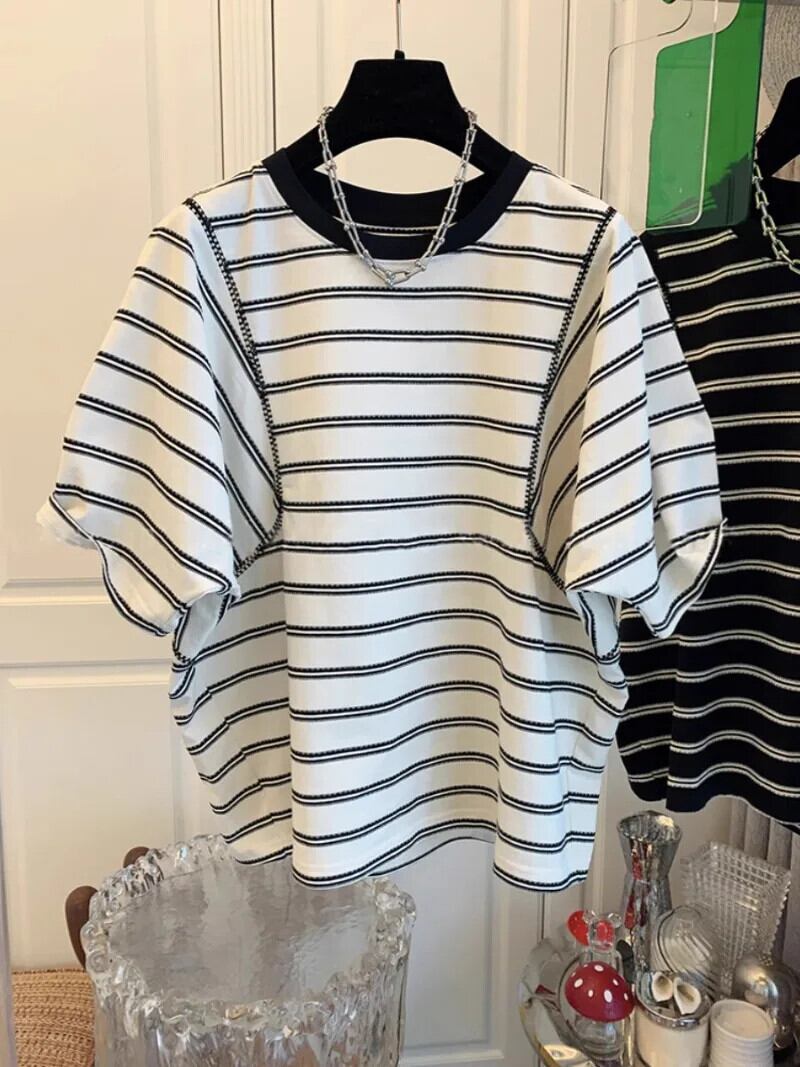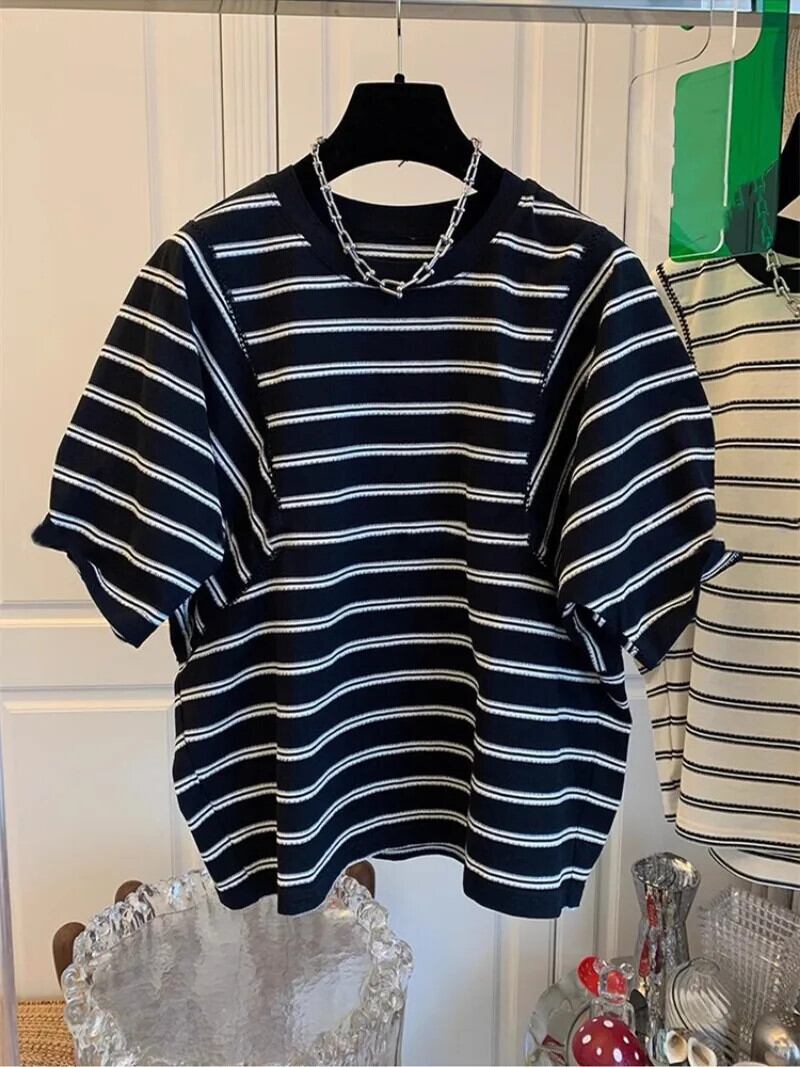 シャツロパデ特大 Tシャツグランジグラフィック Tシャツ夏ストライプ サマー 夏物