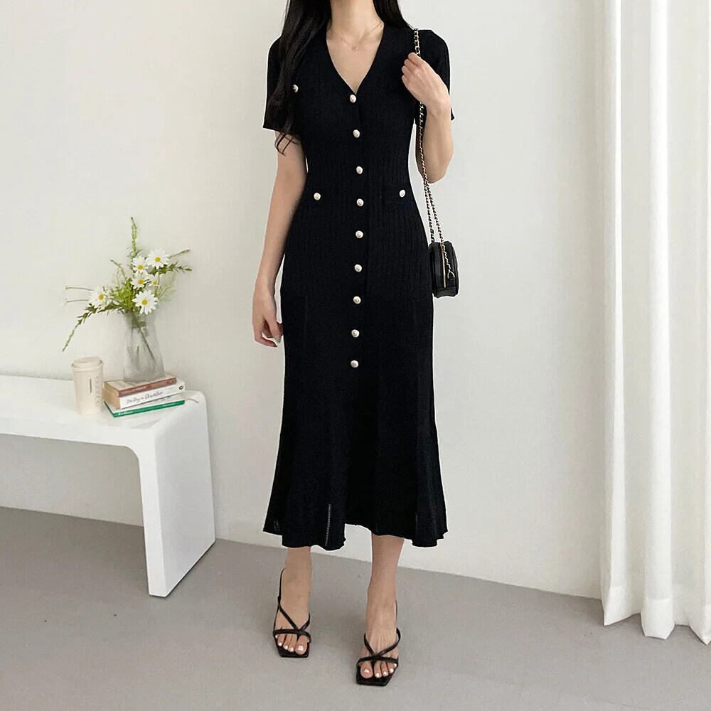 サマーミディドレスニットブラックボディコンスタイルフリルesvestidos 夏物