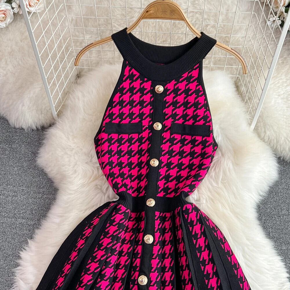 千鳥格子ドレスセクシーホルターオフショルダー Vestidos ミニ夏ボディコンセーターニット Y2k 春スリムブラック スプリング 春物 サマー 夏物