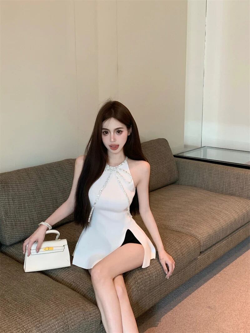 Vestidos デ Verano 2024 セクシーショートパーティー重工業ダイヤモンド弓黒ホルタードレスルース Y2k Ropa ブラック リボン