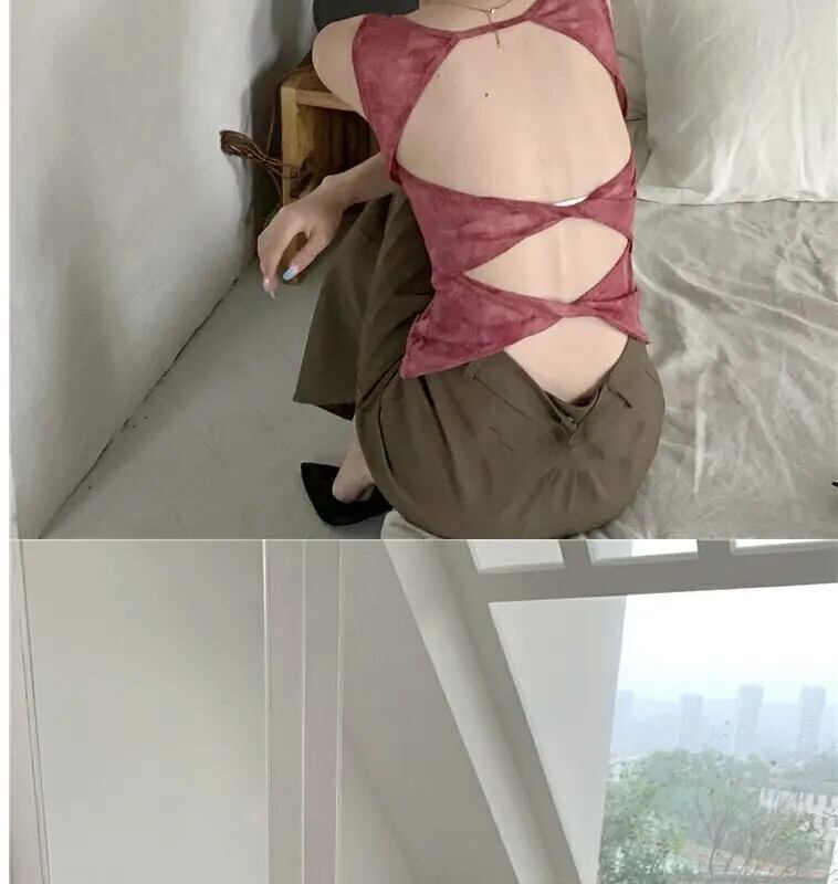 Y2k 美的甘いセクシータンクトップノースリーブストリートタンク背中開いた原宿すべて一致アウトクロップドトップス 大人ガーリー スウィート キュート カジュアル かわいい