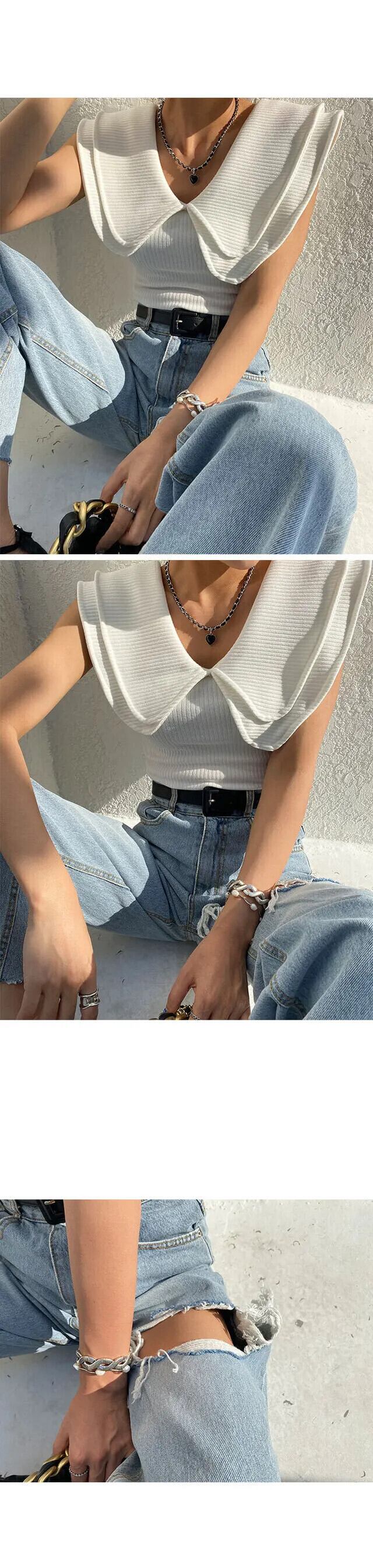 二重層ラーペルノースリーブ Tシャツ痩身トップニット Tシャツロパルーズ Camisetas 原宿 レッド かわいい