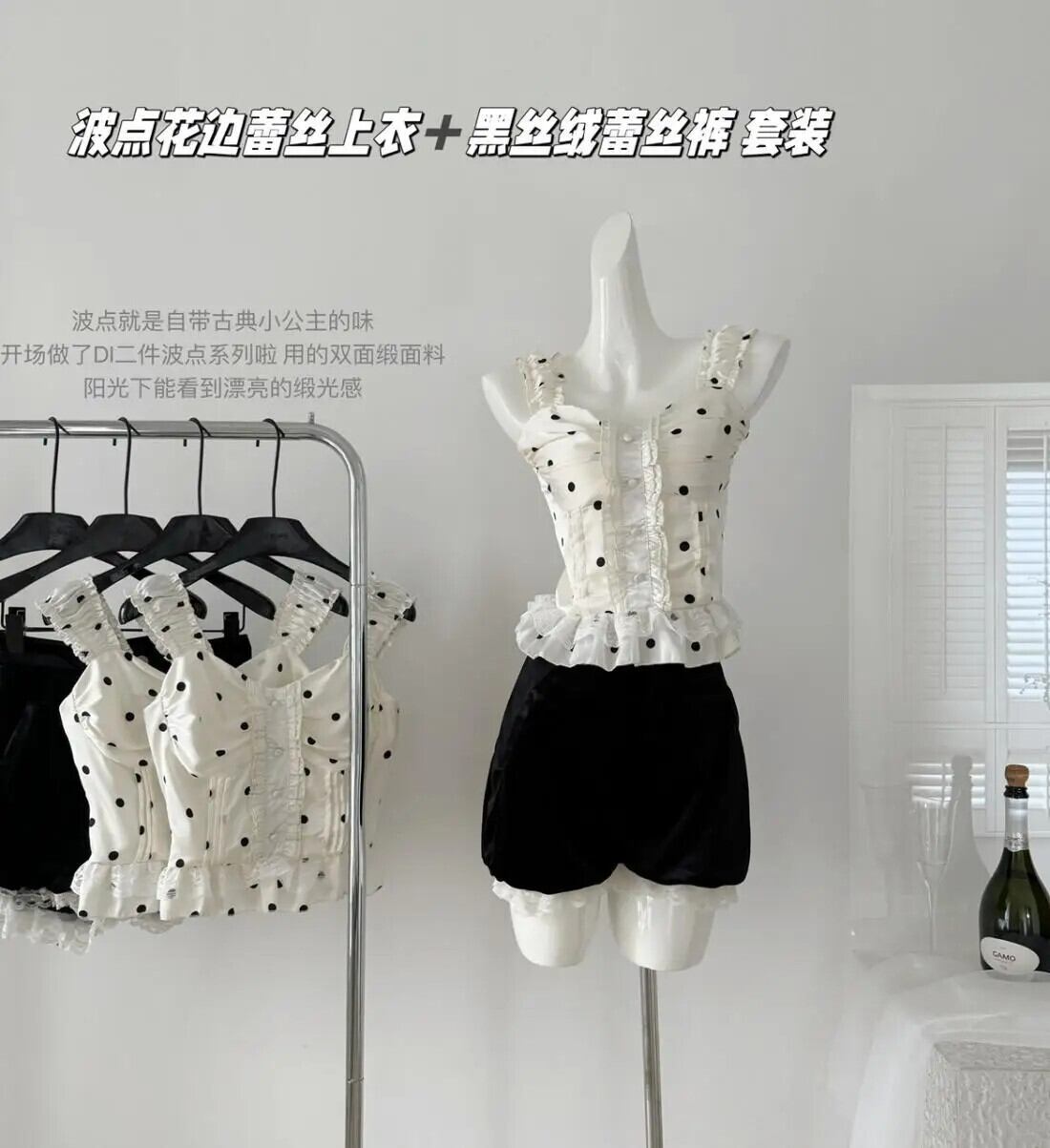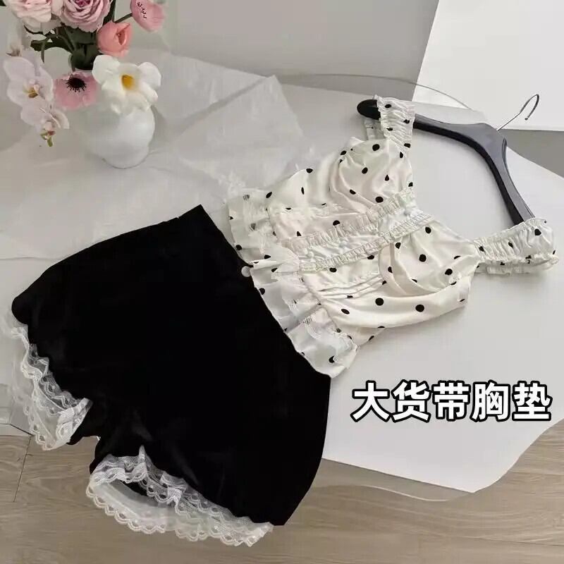 セクシーレースシャツクロップトップスかぎ針編みロパデホルタータンクポルカドットキャミソールTシャツ